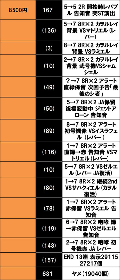 | e 新世紀エヴァンゲリオン〜はじまりの記憶〜 ドテチン 実戦結果 | |