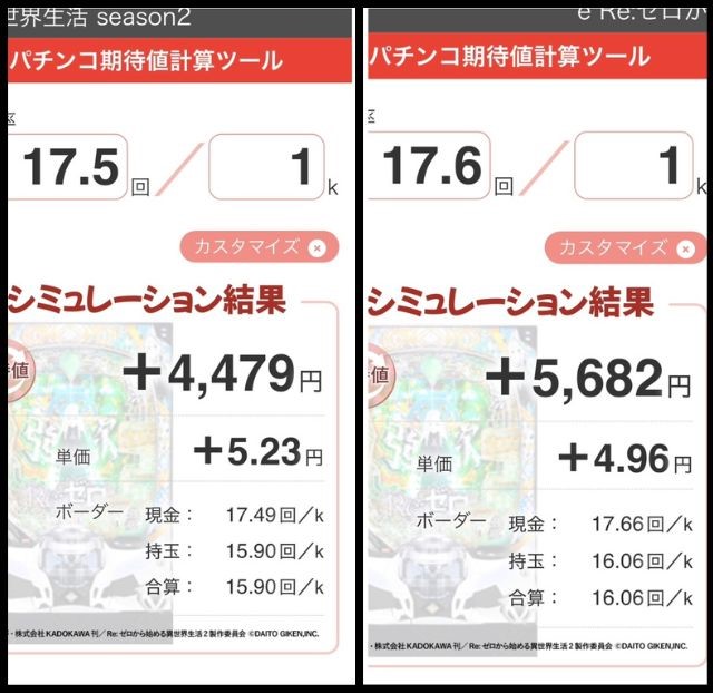 台の見た目的には千円あたり19回転は回りそうと予想していたので、違うリゼロ2を打っていくと1台目よりも回ってくれている状況で一安心。