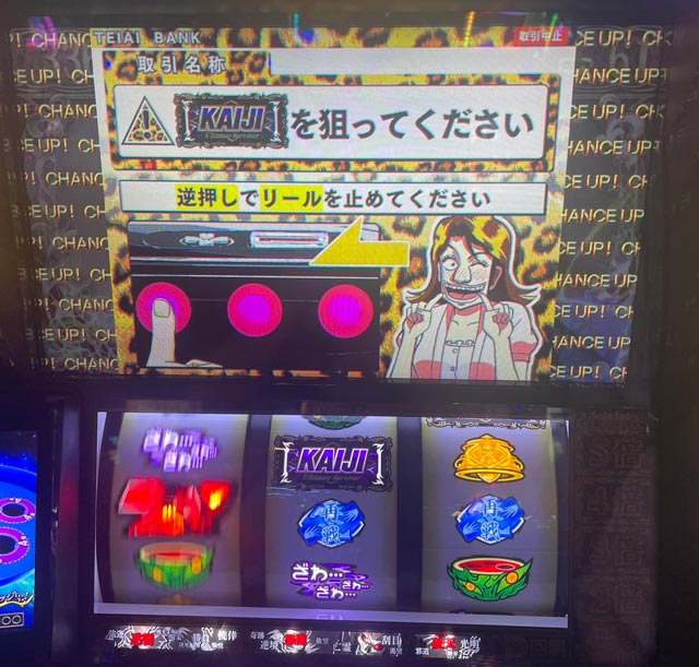カイジのみが別フロアに設置されている。カイジが設置されている階層で他に全台系の対象になるであろうSammy機種は皆無だったので、やるなら絶対にこれだろうという謎の自信に満ち溢れていた。