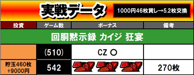 そんな訳で朝の抽選から参加し、狙いのカイジへと着席した。意外にも一般でも取れそうなくらい人気がなかったので、他の人たちにとって優先度は低めだったのかもしれない。それでは実戦へ。