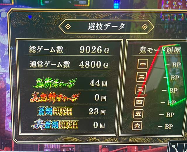 高設定示唆は低設定でも確認しているので、前作よりはちょっと弱いかも。新鬼武者2の時はめちゃくちゃ強かったんだけどね。