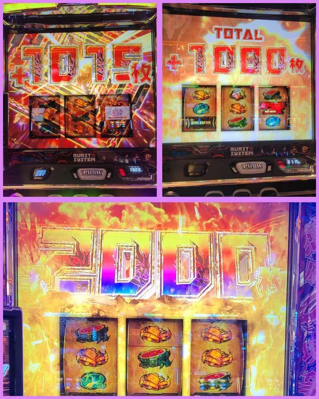 このATは4700枚ほどで終了しましたが、すぐにCZで戻し再びATへ突入。合わせて6000枚ほどのコインを獲得☆