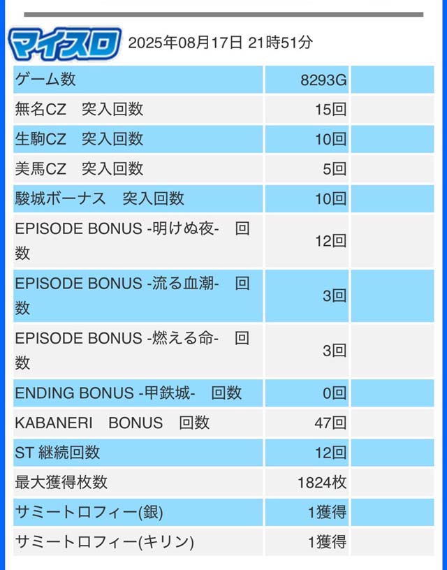 | 223 | 駿城ボーナス ┗生駒CZ 〇、7000pt× ┗銀トロ | |