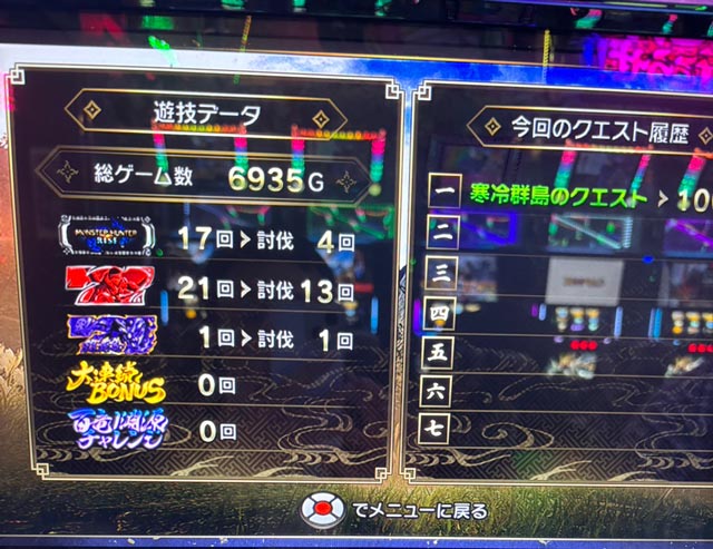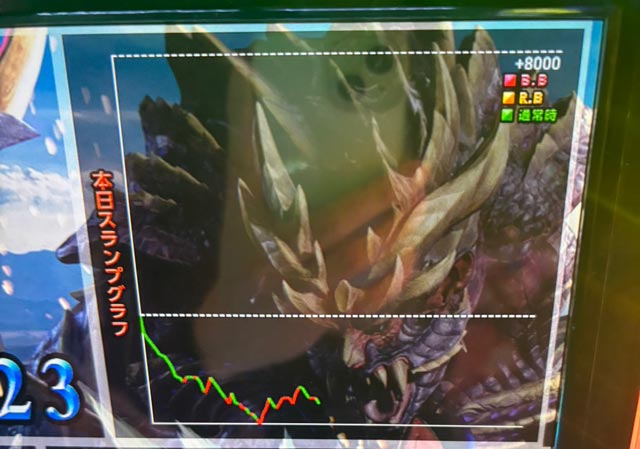 まあモンハンだけでなく今のパチスロは設定推測ムズい機種が多いので、稼働の半分くらいは確定頼みになっています。終了画面大事っす。