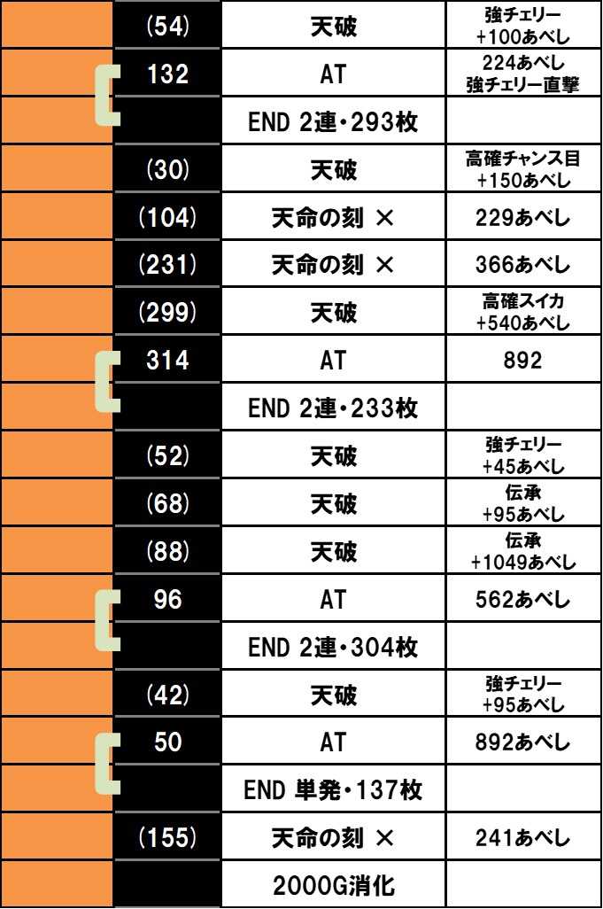後半戦でようやく弱レア小役からの天破を確認したが、小役を重ねてしまう場面も多いし、カサンドラに滞在していると、もう伝承中なのか何なのかがわからない。