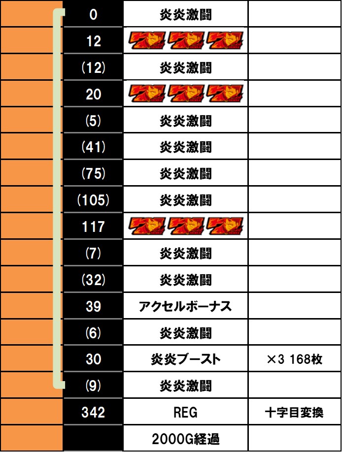 そしてこのREG後、伝承者の罠からさくっと炎炎激闘ゲット。ここを通せるかどうかは設定依存かつ出玉に直結する部分なので、炎炎シリーズにとって相変わらず重要なポイントですね。