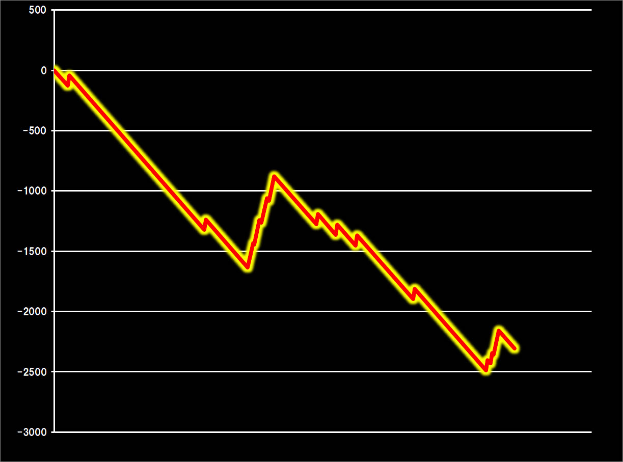REGがわずか2回当選しただけで早くも1000G到達。あまりにも情報が少な過ぎますが、これまで設定6を2回実戦した時には大きなハマリ自体が全然なかったので、この台は設定6の可能性が少なそうですね。普通に低設定な気がします。