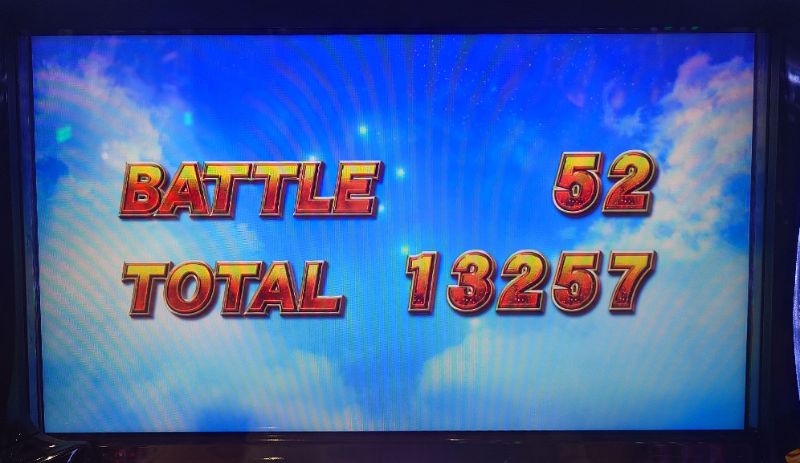 上位AT「裏闘神演舞」は本当に強力なので、順調に継続させて有利区間3周目に到達。ちなみに、この時点での表示枚数は3881枚。