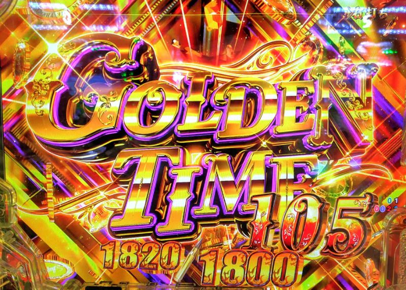 電チュー当たりの約13%で出玉1800個+GOLDEN TIME105に突入する。