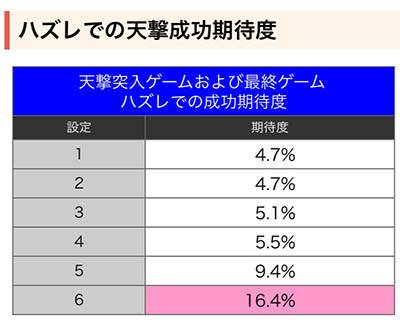 し『現状の推測要素だと896あべしを抜けるか否かと天破出現率くらい。後は後に開示された上位CZの天撃突破率くらいでしょ』