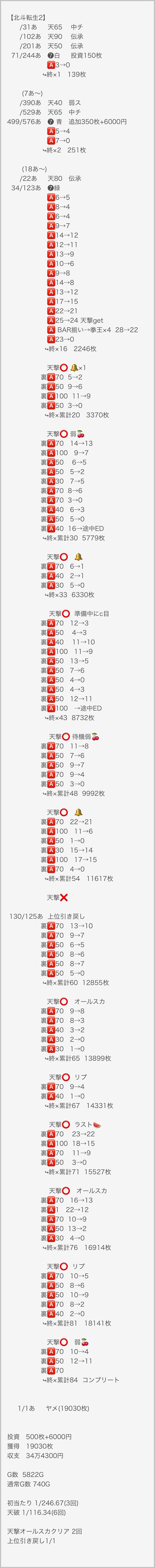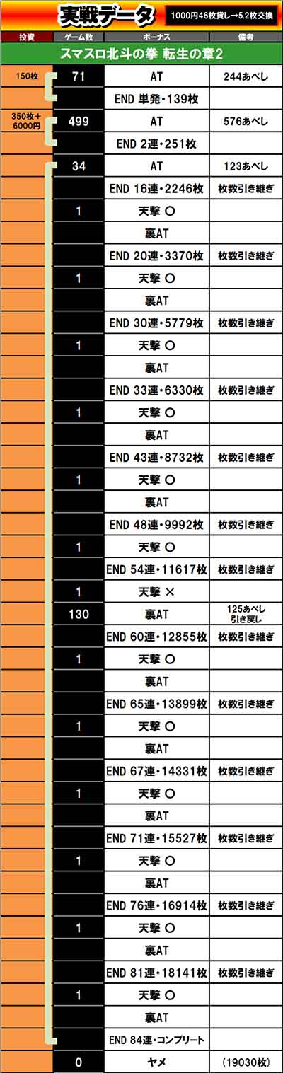 ってな訳で稼働終了。最終的に投資貯メダル500枚+6000円で獲得は19030枚。収支は34万4300円。
