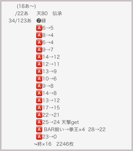 こちら緑オーラスタートに僅かに期待すると、やはりATレベルは高めだったのか順調に継続。15セット目には白BAR揃いから「拳王強襲」に!