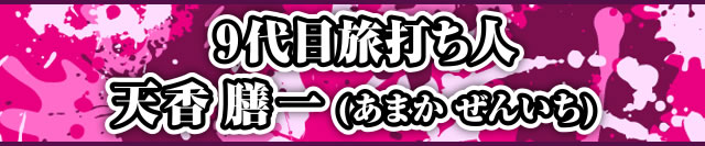 この度第9弾旅打ち人に選ばれました天香膳一です。普段はコンビニエンスストアの店長をしながら、空き時間にパチスロを打っています。旅打ちに応募したきっかけは、旅が好きなことと、ノルマが大幅にアップした第9弾旅打ちに挑戦したいと思ったからです。