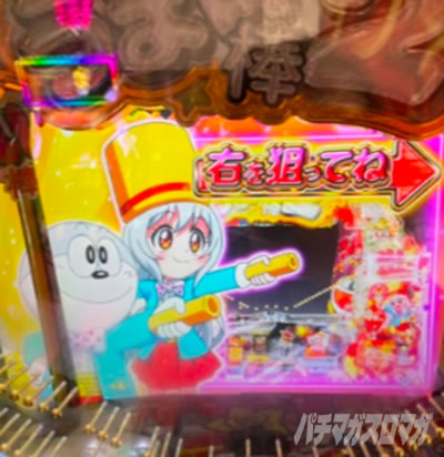 @「右を狙ってね」と表示されたら、すぐに打ち出し開始