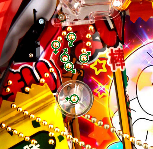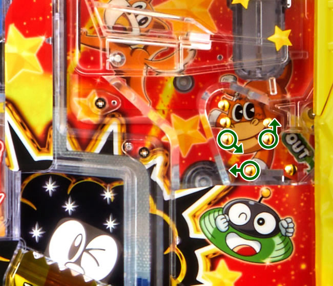 ヘソ方面へ来る玉は全てここを通るので重要。頻繁にいじるのかは微妙だが、風車上のこぼしと風車周りしかこぼしポイントが無いのでここはチェックするクセを付けておこう。少しのマイナスくらいまでは一般的に言えば許容範囲だろう。