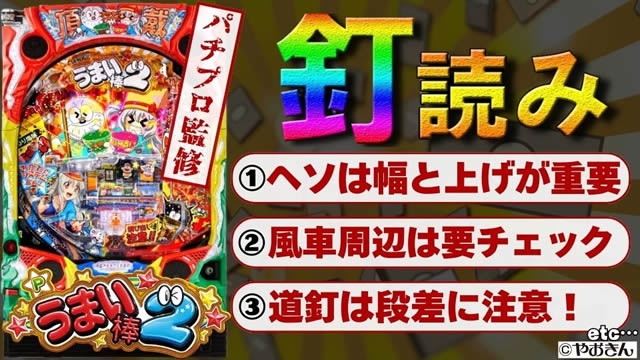 また、道釘を頻繁にいじる店は少ないと思うが、湾曲していたり段差を付けたりすると玉の勢いが殺されてマイナスになる。なにかしら削られていることが多いので、それなりに綺麗ならば合格といえる。
