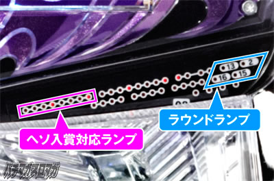 ↑の画像の□で囲まれた部分がヘソ入賞対応ランプ。ここで点灯したランプパターンをツールに入力しよう。