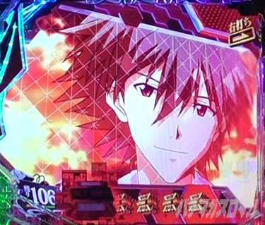 エヴァ系ハズレからの復活パターンでは四号機&カヲルが降臨! また、通常画面に戻った後、保留が減らずに変動が始まると突発大当りが発生する復活演出も存在する。