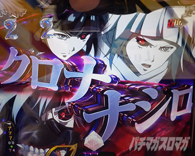 次の大当りは先読みなしから当該変動でいきなり役モノ落下の即当り。その次は先読み保留変化(点滅)から当該で瞬間決着のクロナ&ナシロに発展して大当り。即決着系が多いながらもバリエーション豊かなのはいいよね。