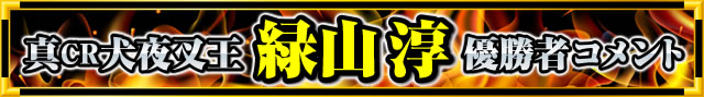 見事、「真CR犬夜叉王」に輝いたのは緑山淳! 真の王に、今回の勝利の秘訣と、立ち回りのポイントを披露してもらったぞ!