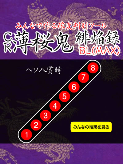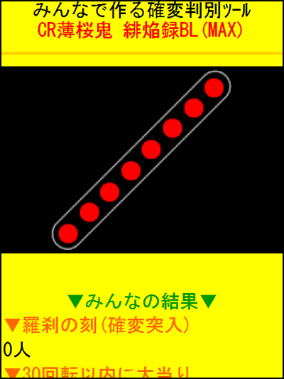 大当り後、羅刹の刻(確変)に突入したか、修羅の刻(潜確or通常)突入時は30回転以内に大当りしたかについてみんなの結果が表示されます。