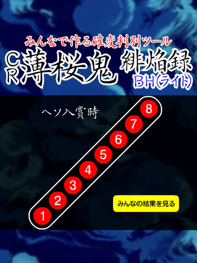 大当り後、羅刹の刻(確変)に突入したか、修羅の刻(潜確or通常)突入時は30回転以内に大当りしたかについてみんなの結果が表示されます。