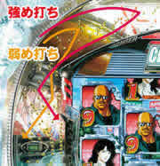 弱め打ちはスルー上から玉がこぼれてしまうが、ワープに絡む割合がアップする。強め打ちは外へこぼれていく無駄玉が減少する。台の調整に合わせ2つのストロークを使いわけよう。