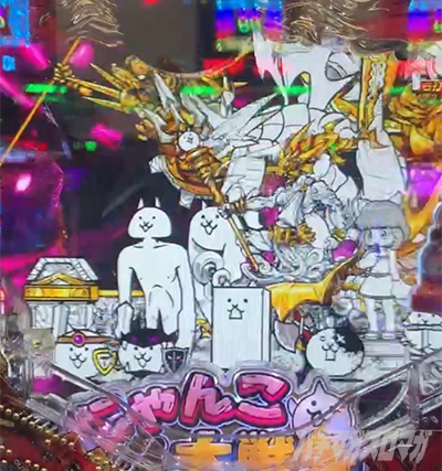 スロットよりはまだキャラを有効活用していて、にゃんこ大戦争のオマージュしまくりの良さを上手く使えている。基本的ににゃんこ大戦争は世界観も何も無いので、面白く使ったもの勝ち。