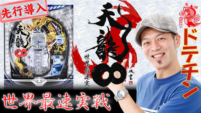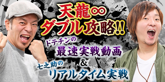 超話題の「天龍∞」を、動画&リアルタイム実戦コラムで徹底特集! 全国導入開始に先駆け、先行導入店にてドテチン&七之助が実戦するぞ。