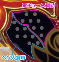 で囲まれたランプが電チュー入賞となる。非常に見づらいので、判別の際は携帯カメラで撮影する等、正確な判別を心がけよう。