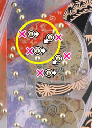 本機は入賞口R数変動タイプなので、スルーの釘調整は確変割合への影響大。