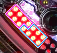 で囲んだ下のランプが電チュー入賞対応となる。通常時の判別はヘソ入賞対応ランプをチェックだ。