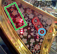 で囲まれた部分。確変判別時はここに表示されたパターンをツールに入力しよう。また、通常時のモード移行の際には4Rランプ(