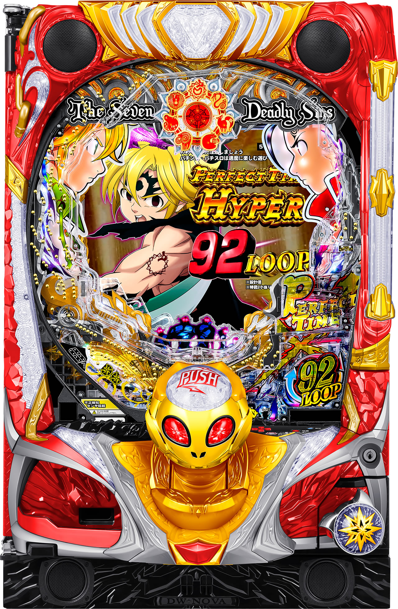 ◆パーフェクトタイムHYPERの継続率は約92%!! 完全新規演出満載で、メリオダスが敗北しない限りRUSHが継続するぞ!! 転落小当り確率は約1/227.4。