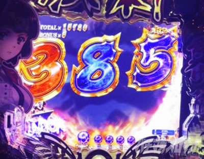 液晶左下の残りST回数がLOCKされる先読み演出。LOCKの色で期待度が変化。