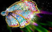 バタフライの羽は、虹色の光を放ちながら液晶をまるごと包みこむ。前作は3枚だった羽が4枚に増え、より巨大になった(上に3枚、下に1枚)。その大きさは前作比1.7倍に!!