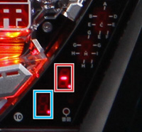 で囲んだ下から2番目の7セグが電チュー入賞対応となる。アナライザーボーナス中はヘソ入賞対応セグに表示されたセグをツールにぶち込もう。確変なら即ヤメ厳禁!