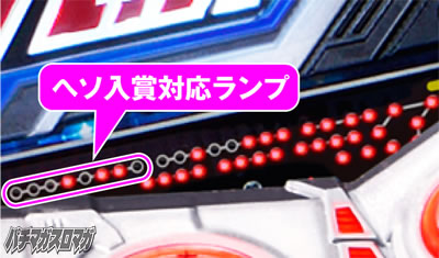 で囲まれた部分のランプが「ヘソ入賞対応」となる。判別の際はココをチェックしよう。ランプの数が多く、点灯位置を間違いやすいので正確に!!