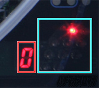ヘソ入賞時の大当りラウンド中に、上記画像□で囲まれたランプパターンをチェック。