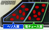 左のランプがヘソ入賞、右のランプが電チュー入賞となっている。非常に見間違いやすいランプ構成なので、判別の際はメモを取ったり、携帯カメラで撮影してから判別するなど、正確な判別を心がけよう。
