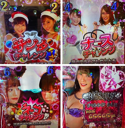 すると、すぐさま777で即当り。突入後わずか20回転ちょいでの当選だったのでかなり危なかったが、何はともあれ10Rの出玉を獲得して三度目の正直。ただ、このSTは先ほどの2回が嘘のようにリーチが良く掛かり、コスプレするセクシー女優を堪能しつつ、程よく4連チャン! これにて投資の半分以上が返ってきた。
