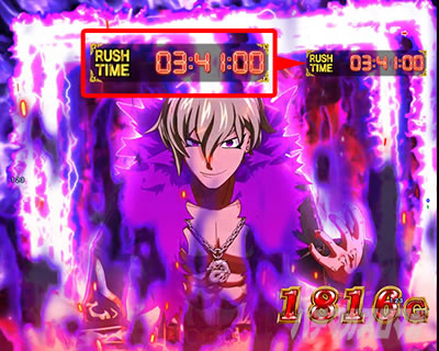超源RUSHは、3カウント(時短3回転)以内に図柄が揃えば大当り!
