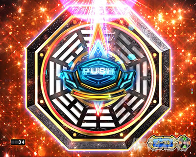羅盤演出は、羅盤の針が停止すると演出ボタンが発生し、押下すると針の方角に対応した予告演出が発生して信頼度を示唆。左上の極ギミックを指すと極源炎舞濃厚だ!!