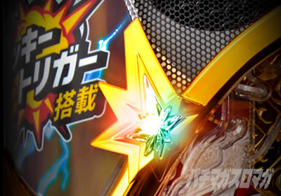 筐体左上の「ラッキースターランプ」が虹色に発光すれば、大当り+LT突入濃厚!? リーチ成立時、VSリーチ前半開始時、VSリーチ後半開始時、大三源リーチ開始時に発生する可能性がある。