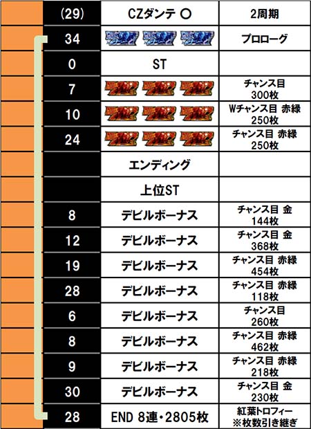 そして、アイキャッチとST終了画面でも示唆あり。気になるのはダンテCZ関連、期待度が高く成功ならST直行なのでかなり強い。