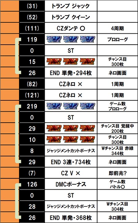 まだ導入前なので示唆の詳細は不明ですが、ダンテCZの当選が近い示唆が存在するのであれば強力な立ち回り要素になりそう。