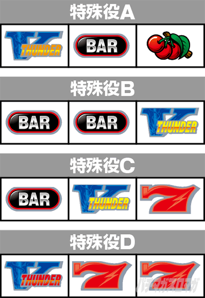 「BAR・BAR・V」入賞時はリーチ目役BorEとなるため、次ゲームから3連V狙いで両BBの入賞が狙えるぞ!