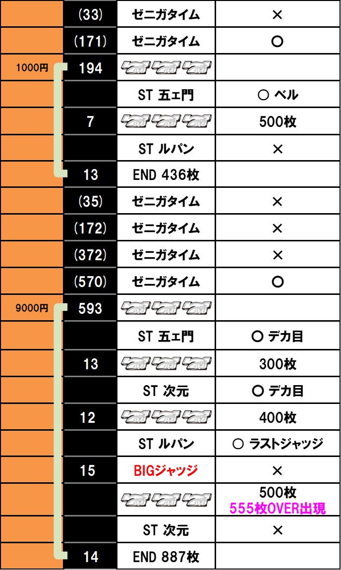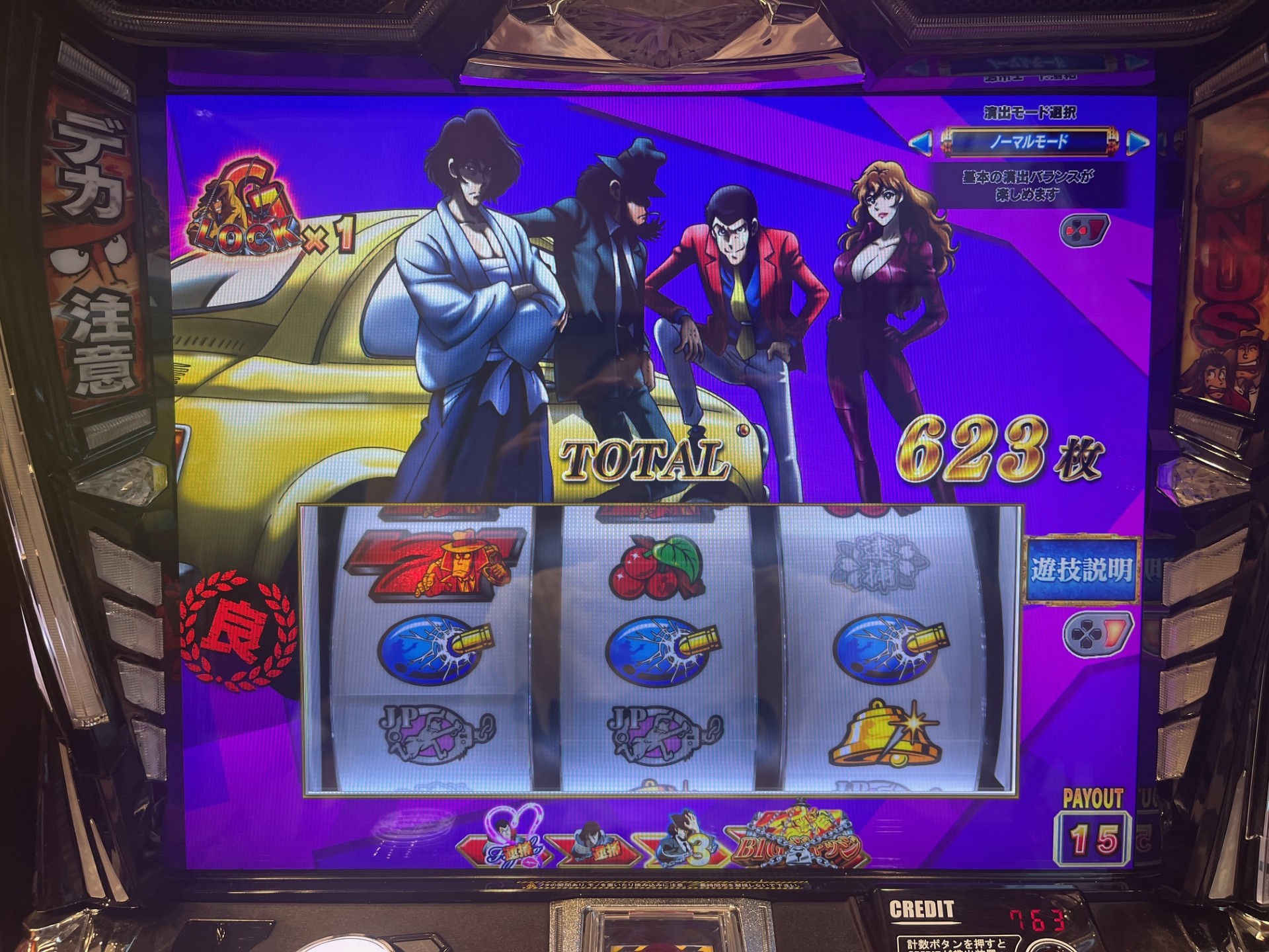 例えば五ェ門のSTなら対応役がベルなので、この時点でゼロ確。ベルが揃ってもよし、ハズれてもデカ目。こういう噛み合いが堪らない。