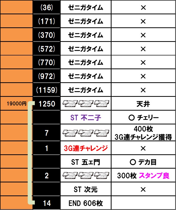 250G・450G・650Gなど普段突入しないゾーンでゼニガタイムに突入するとチャンスではあるが、確定ではなく普通にハズれる。おそらくモード示唆の可能性があるので、そこは注視しておきたい。
