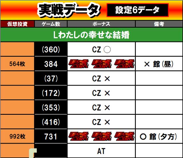 現状、いい方なのかそうでもないのかは不明。設定6ではこうなったよーという数値のご参考までに!